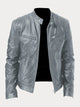 This men’s stand collar jacket features a clean silhouette with multiple zip pockets and a sharp cut. Its adaptable look makes it suitable for both casual and semi-formal outfits.